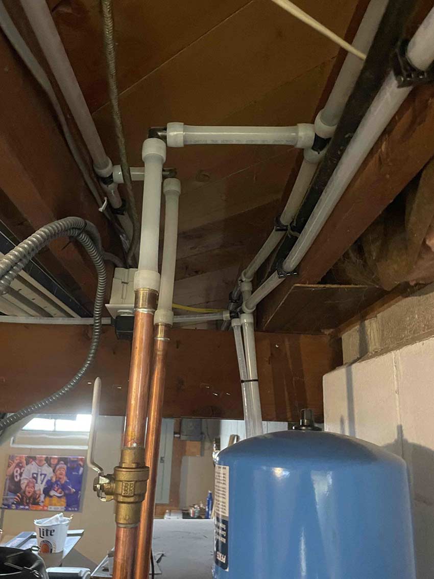 Tear out of old water piping and installed new Plastic Pex Piping... clean and neat!