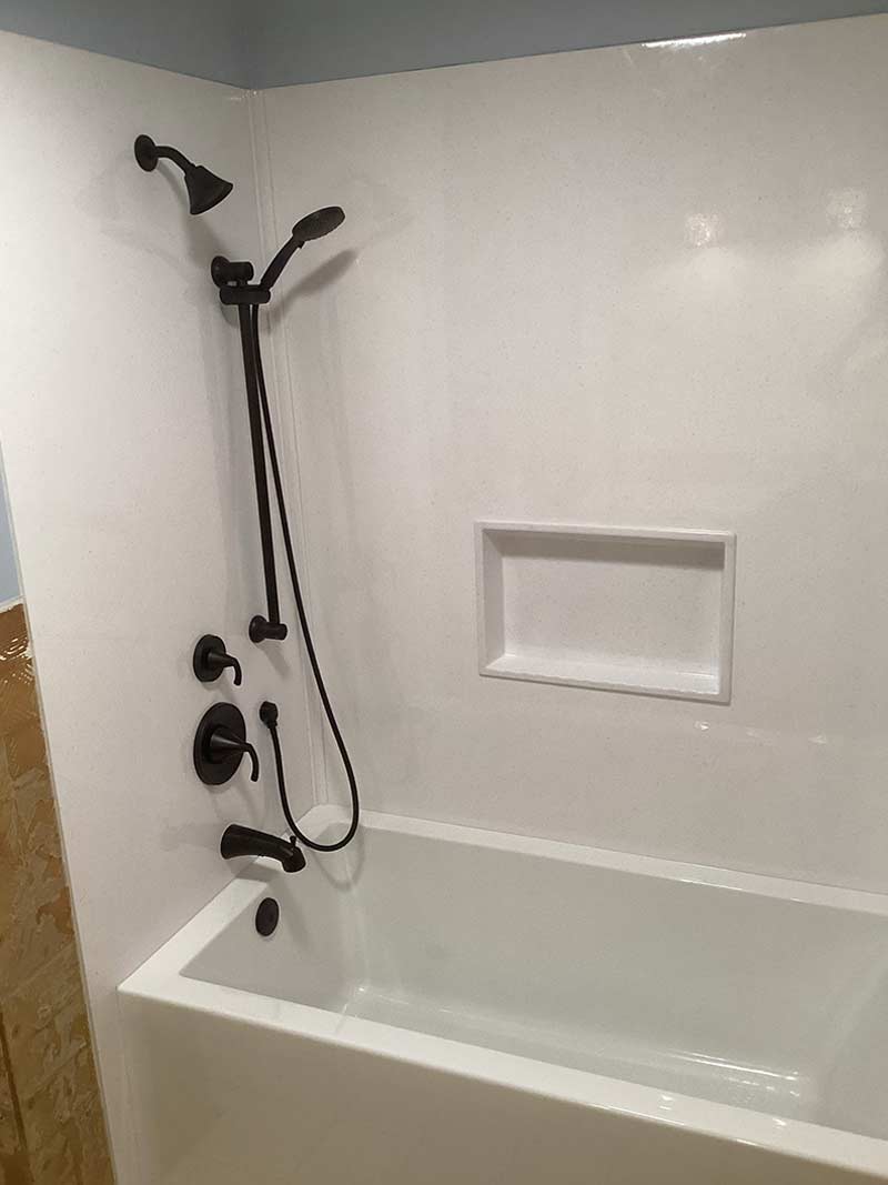 Removal of an old Tile Shower and Installation of a new Onyx Collection Shower with Moen Oil Rubbed Bronze Fixtures